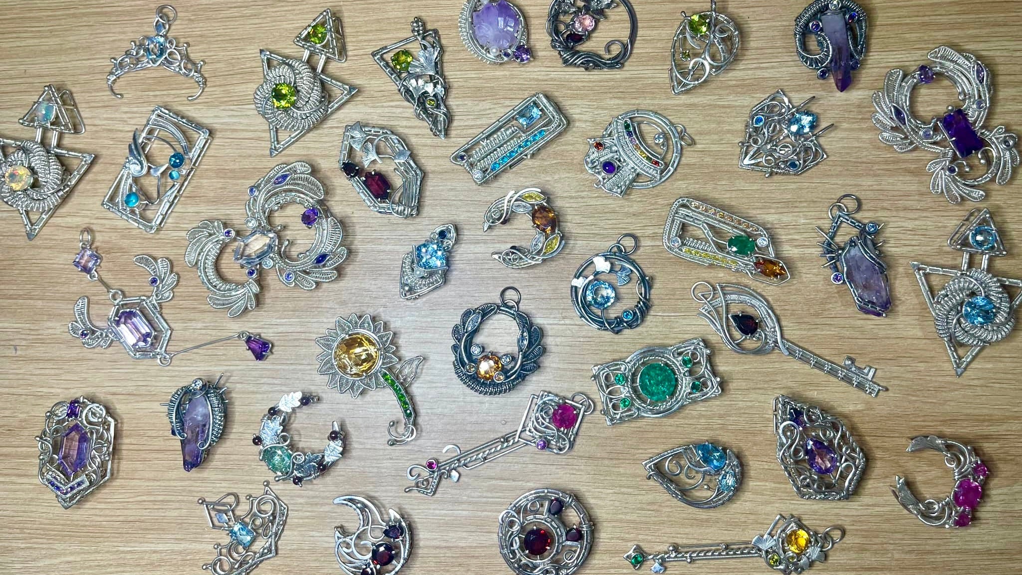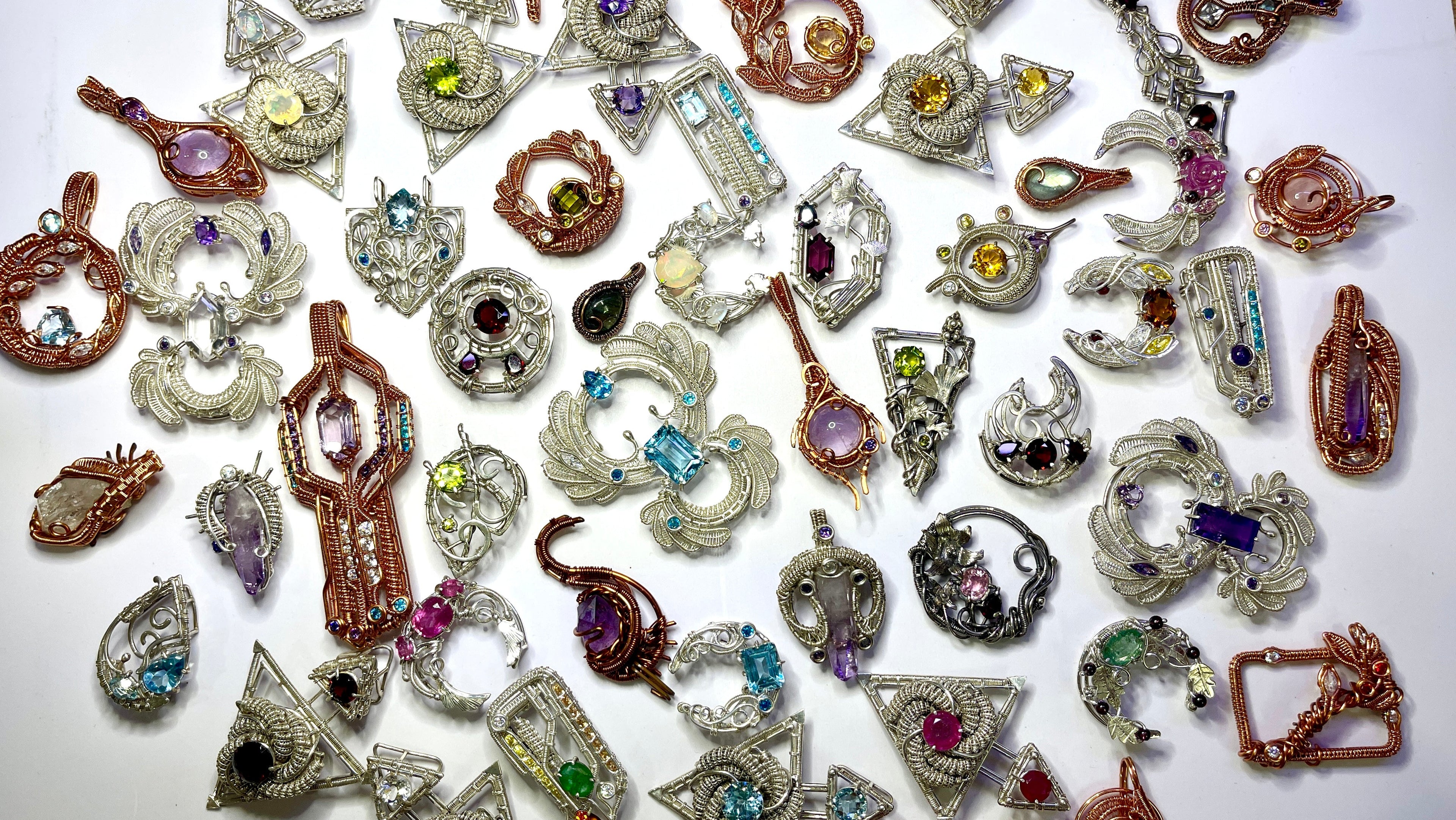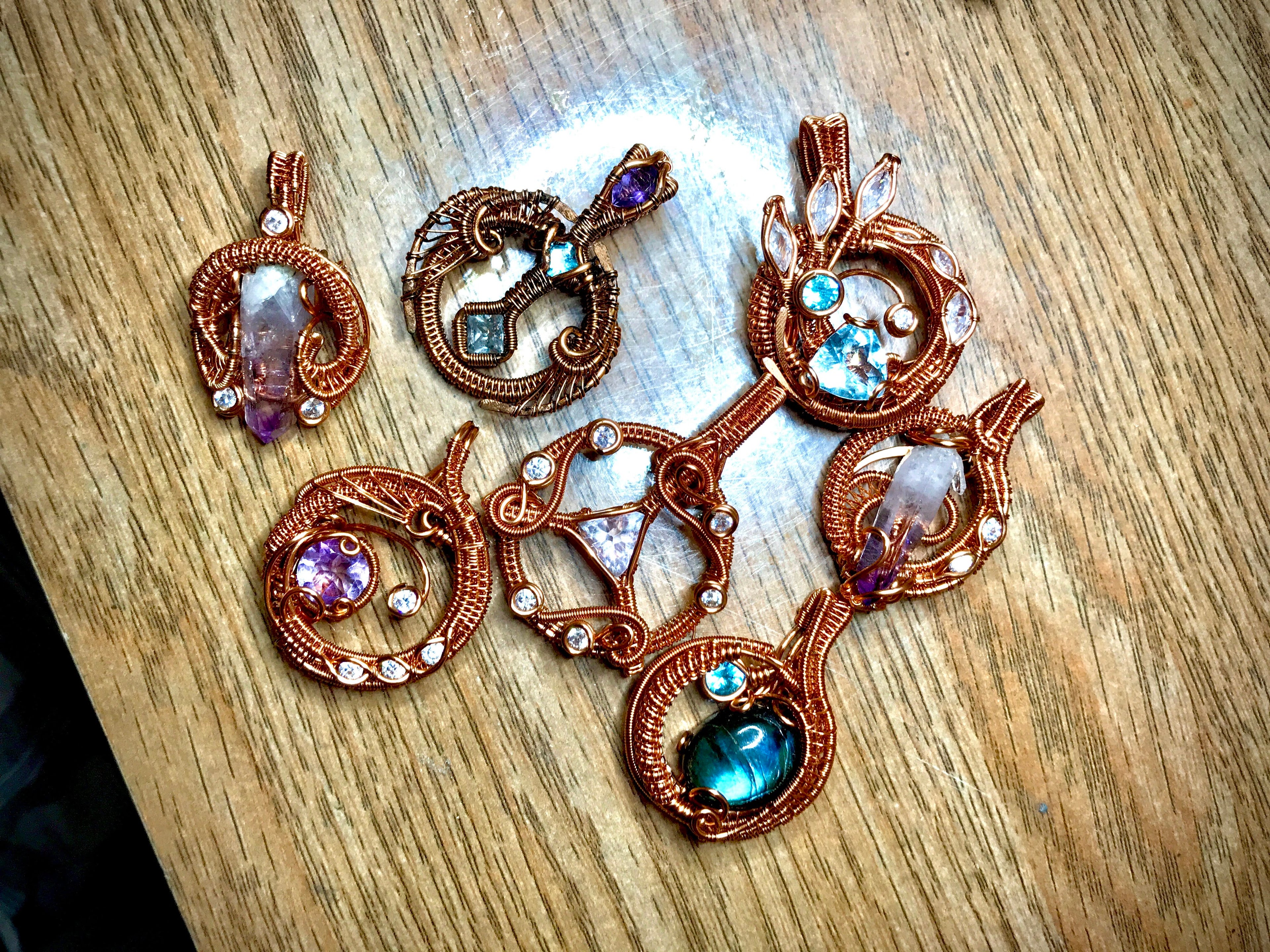 A collection of work made from copper wire