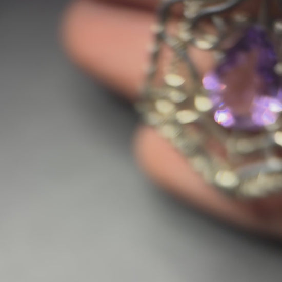 💜 Royal Shield– Handmade Sterling Silver Wire Wrap Pendant/Brooch with Amethyst