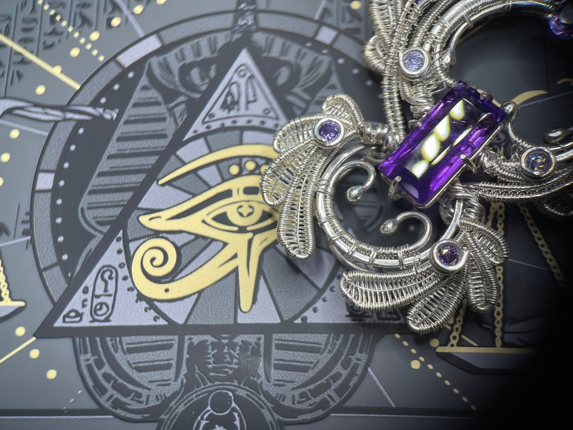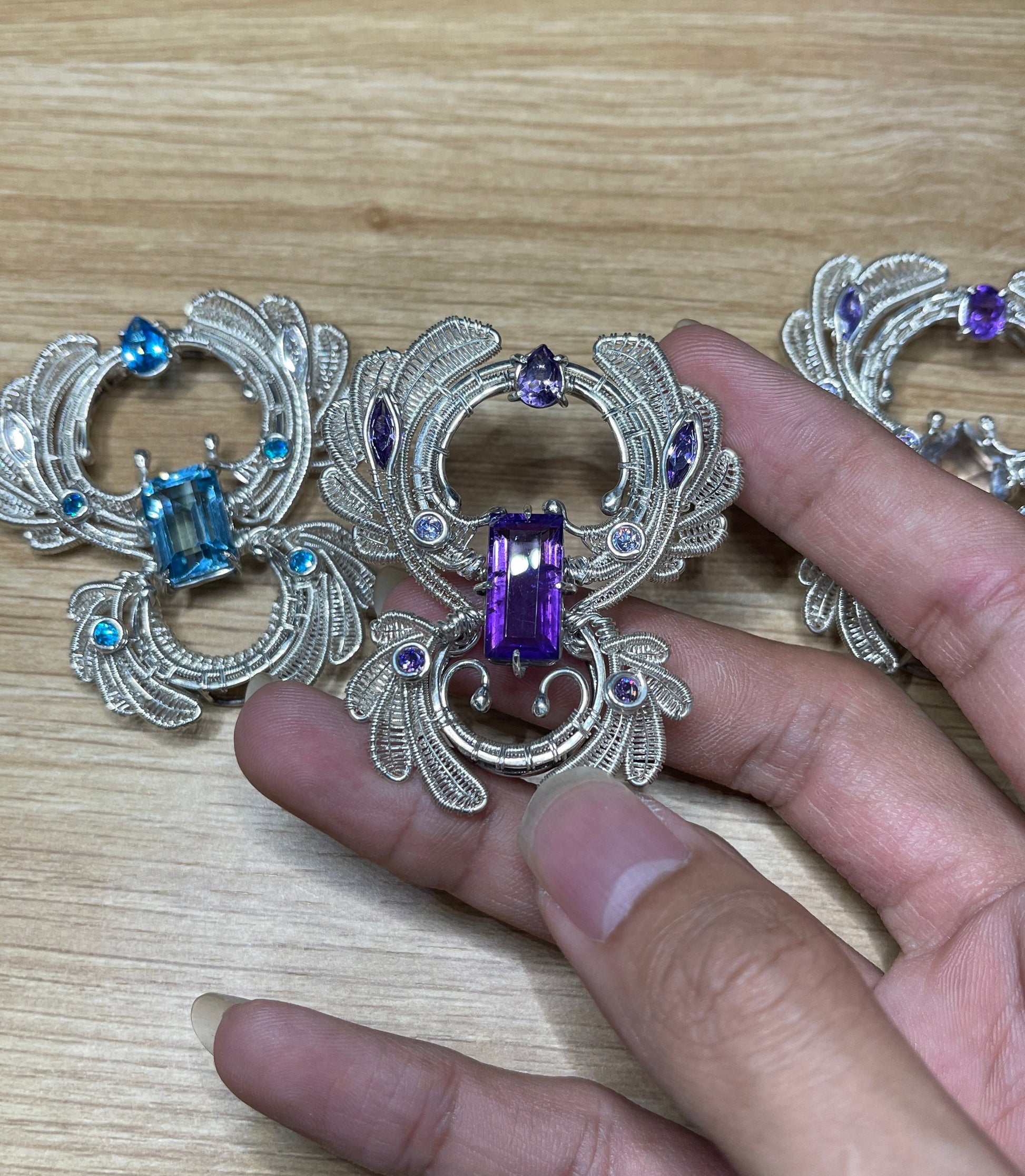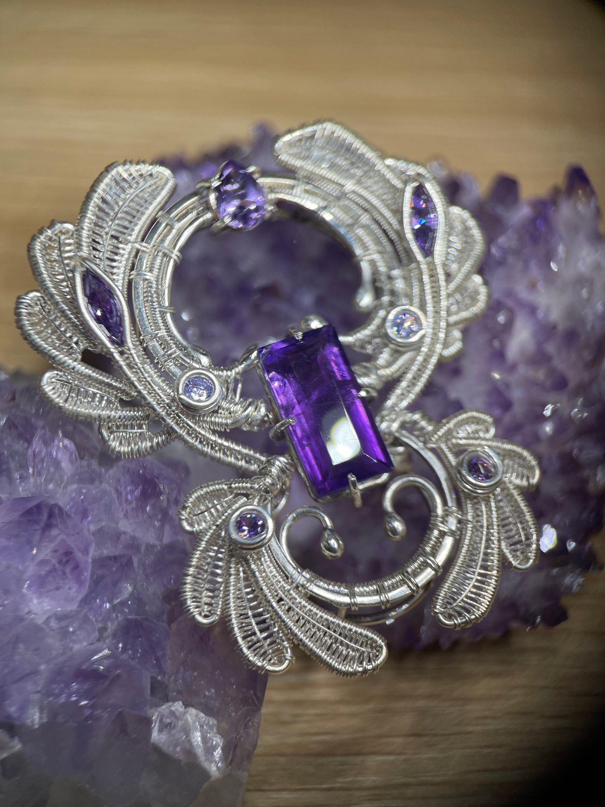 The rich purple hues of natural amethyst paired with sparkling CZs create a luminous contrast that captures light and attention. Whether worn as a pendant or brooch, itโs a statement of beauty, spirit, and individuality.