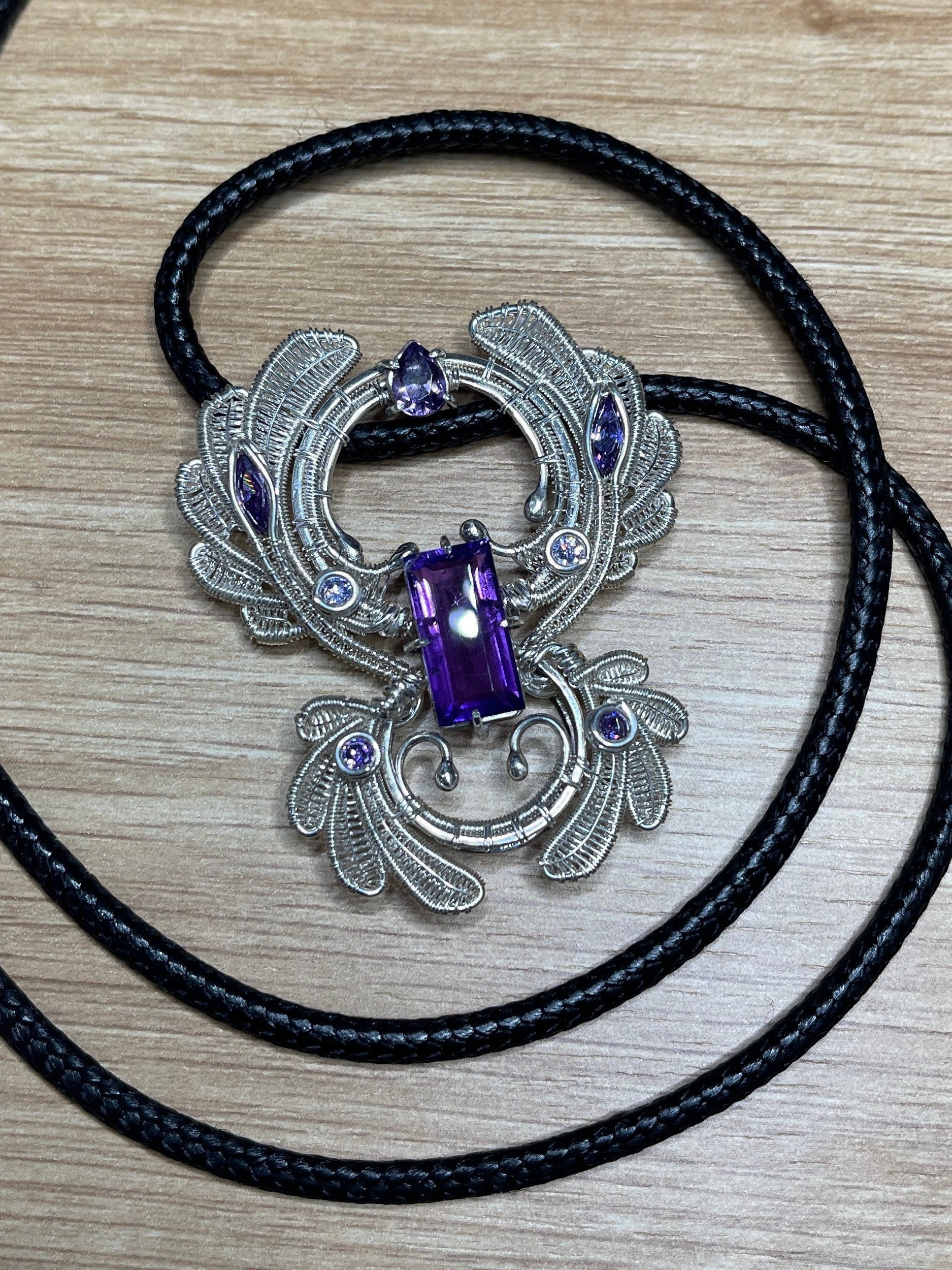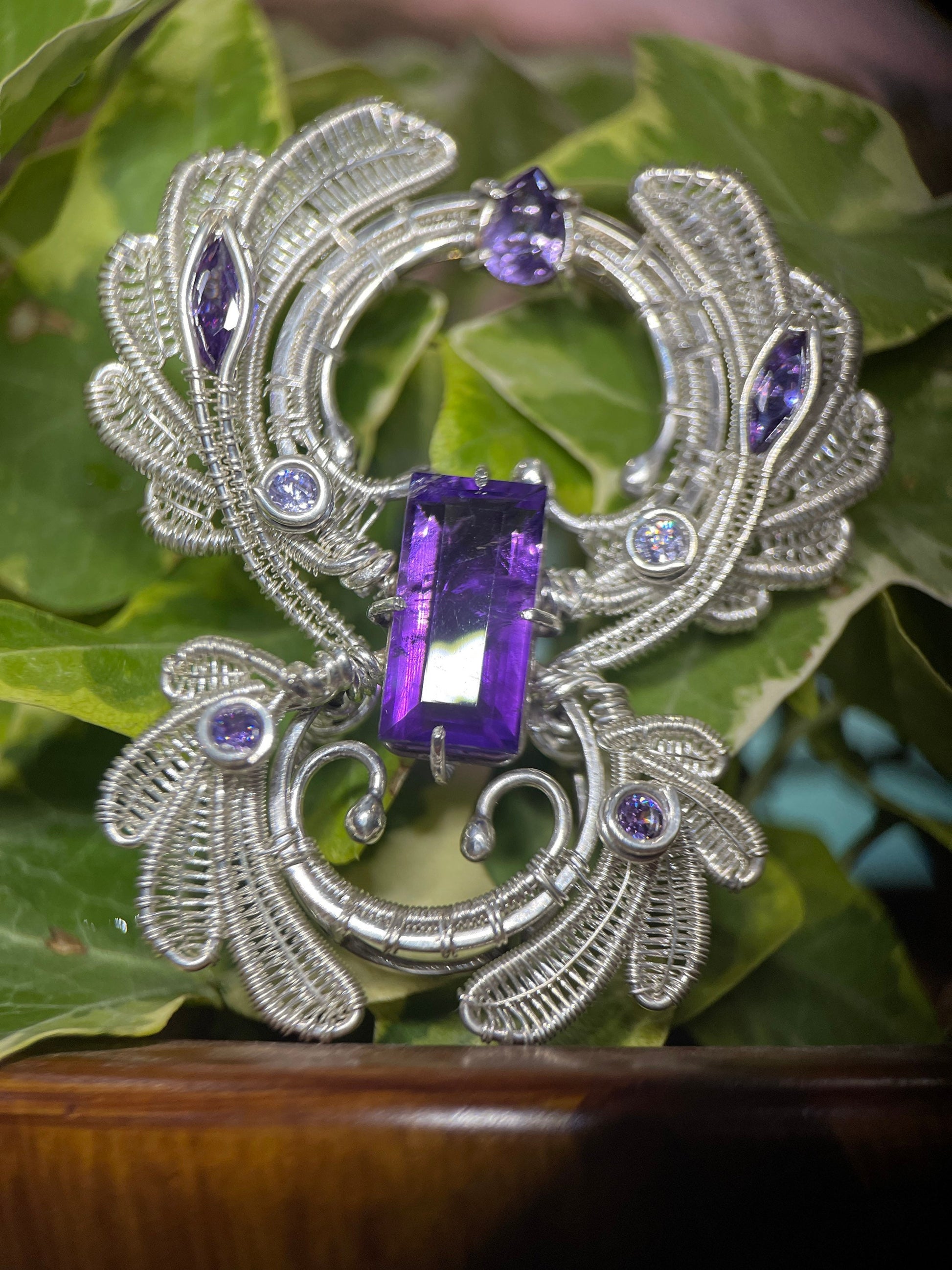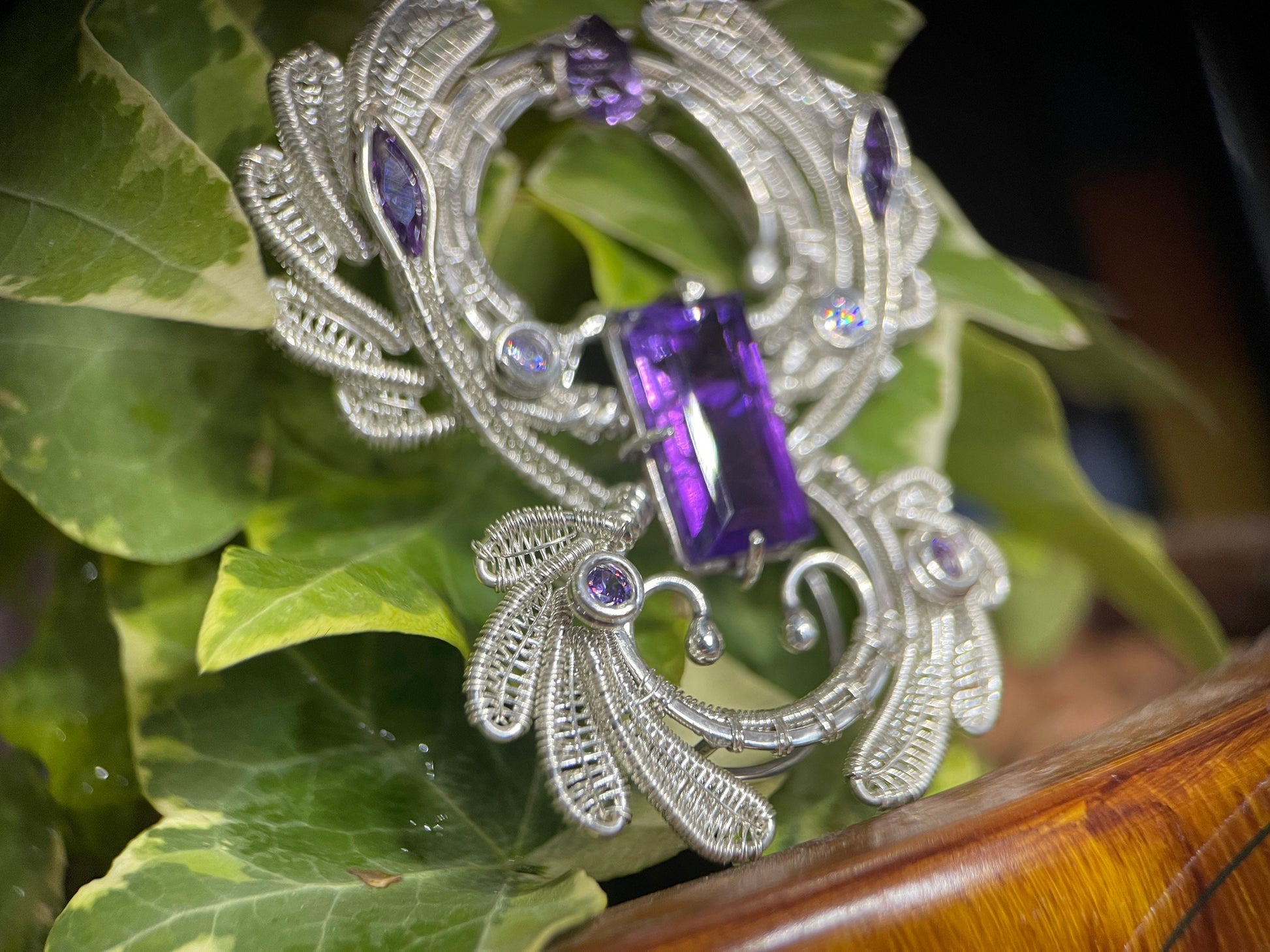 CELESTIAN โ Sterling Silver Wire Wrap Pendant Brooch with Amethyst