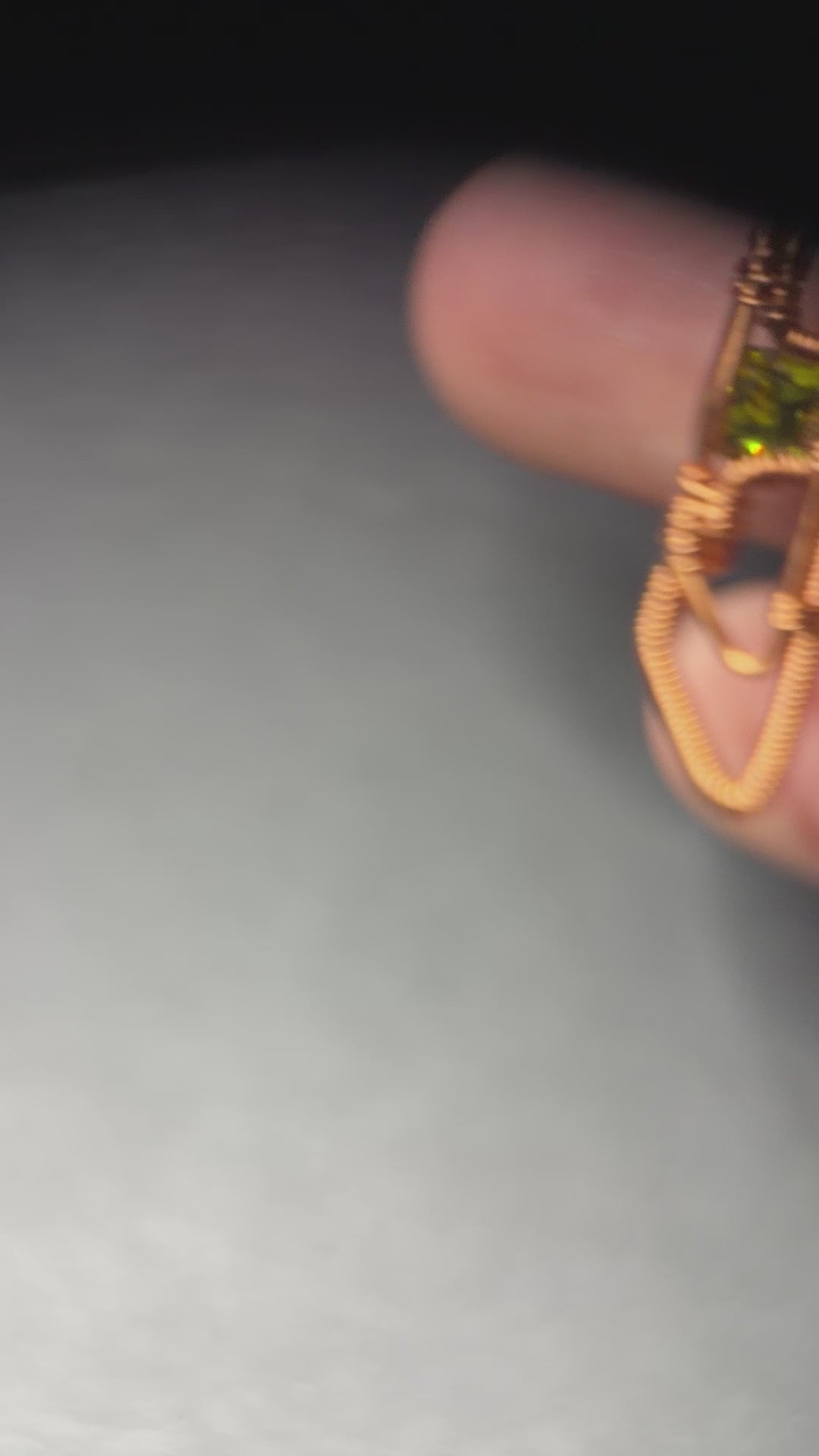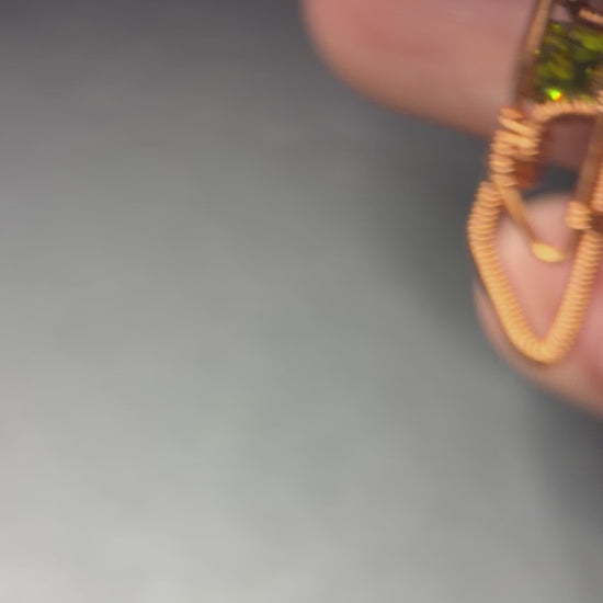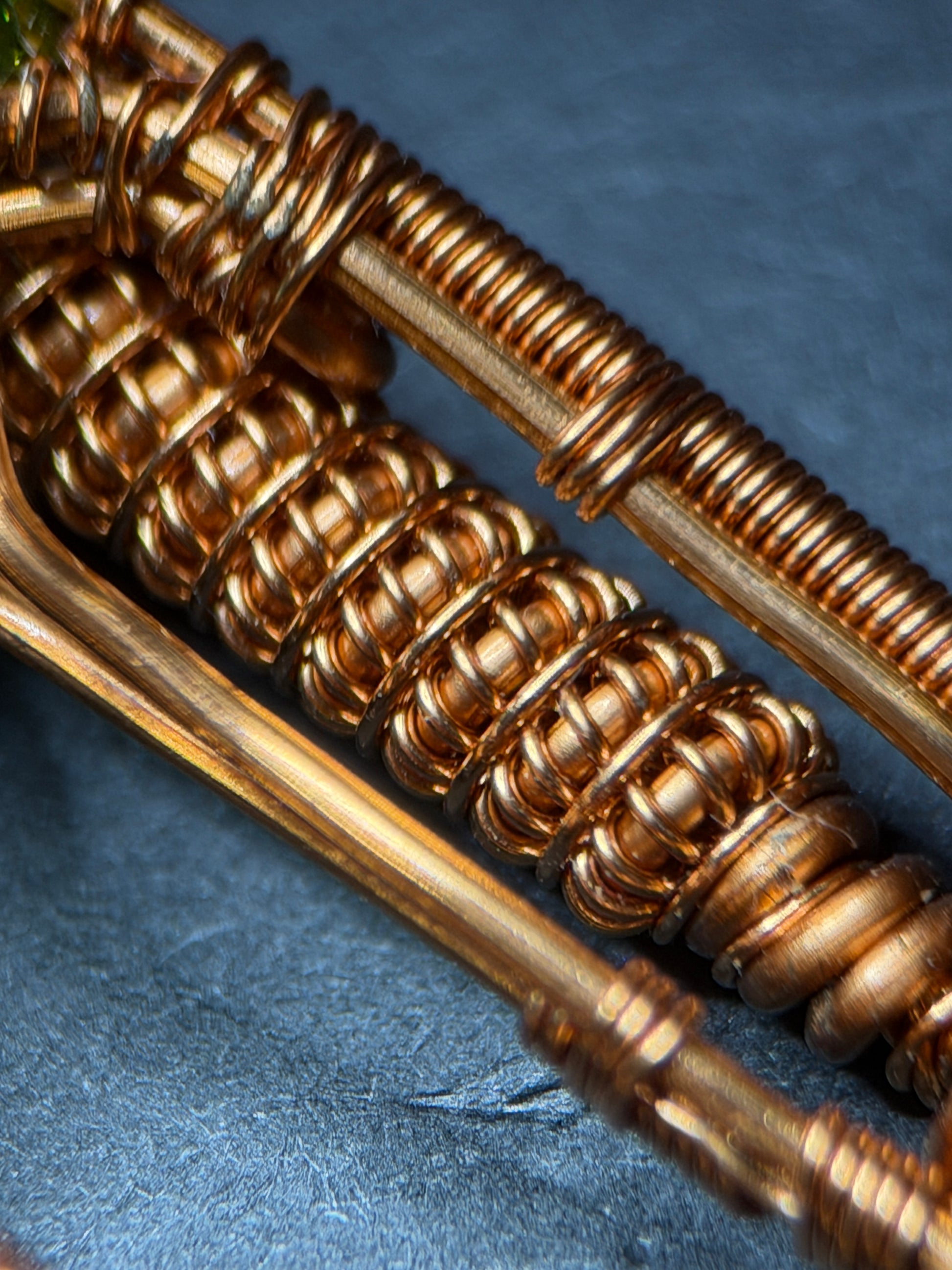 Handcrafted Copper Wire Wrap Pendant with Emerald Simulant