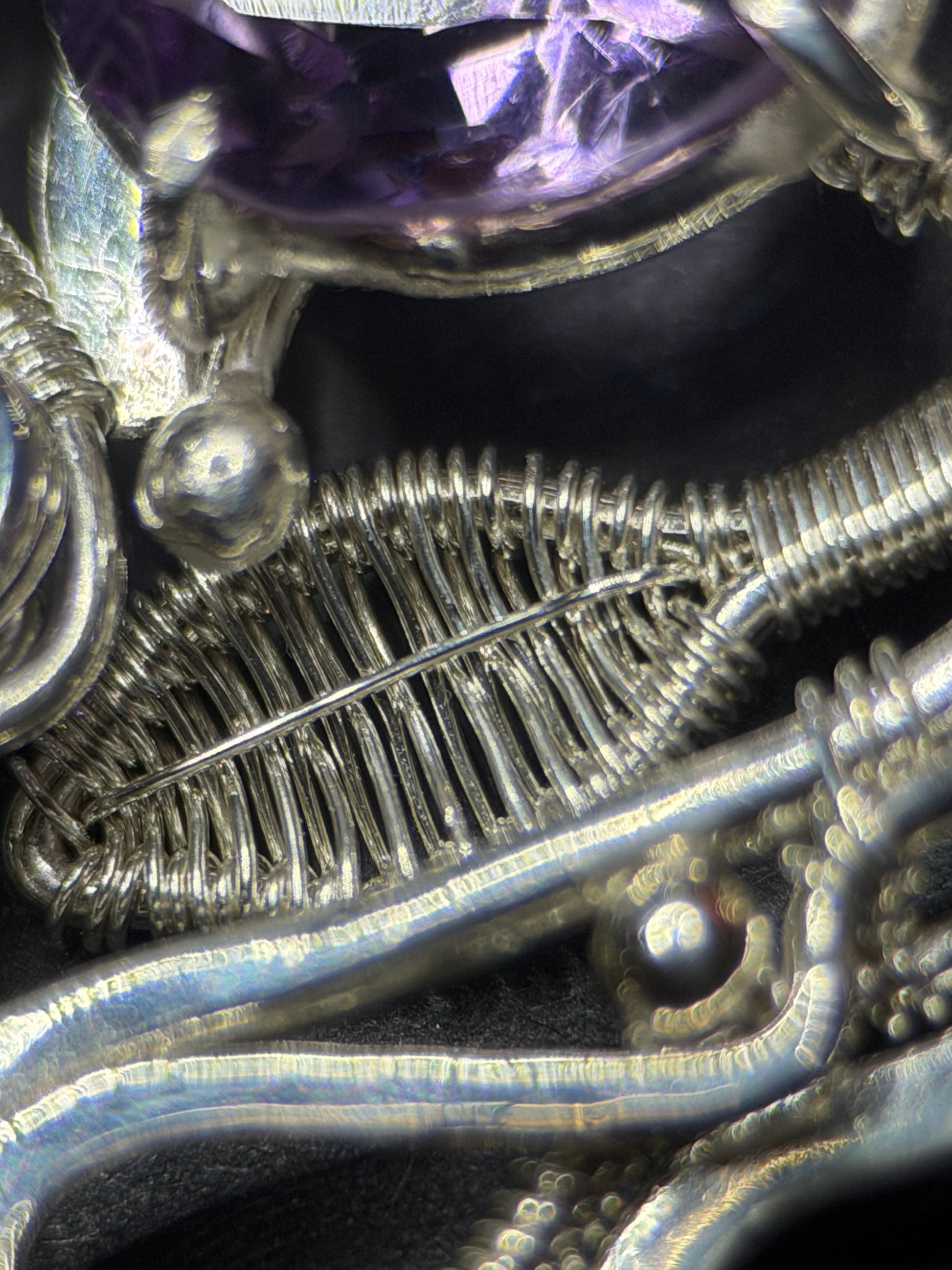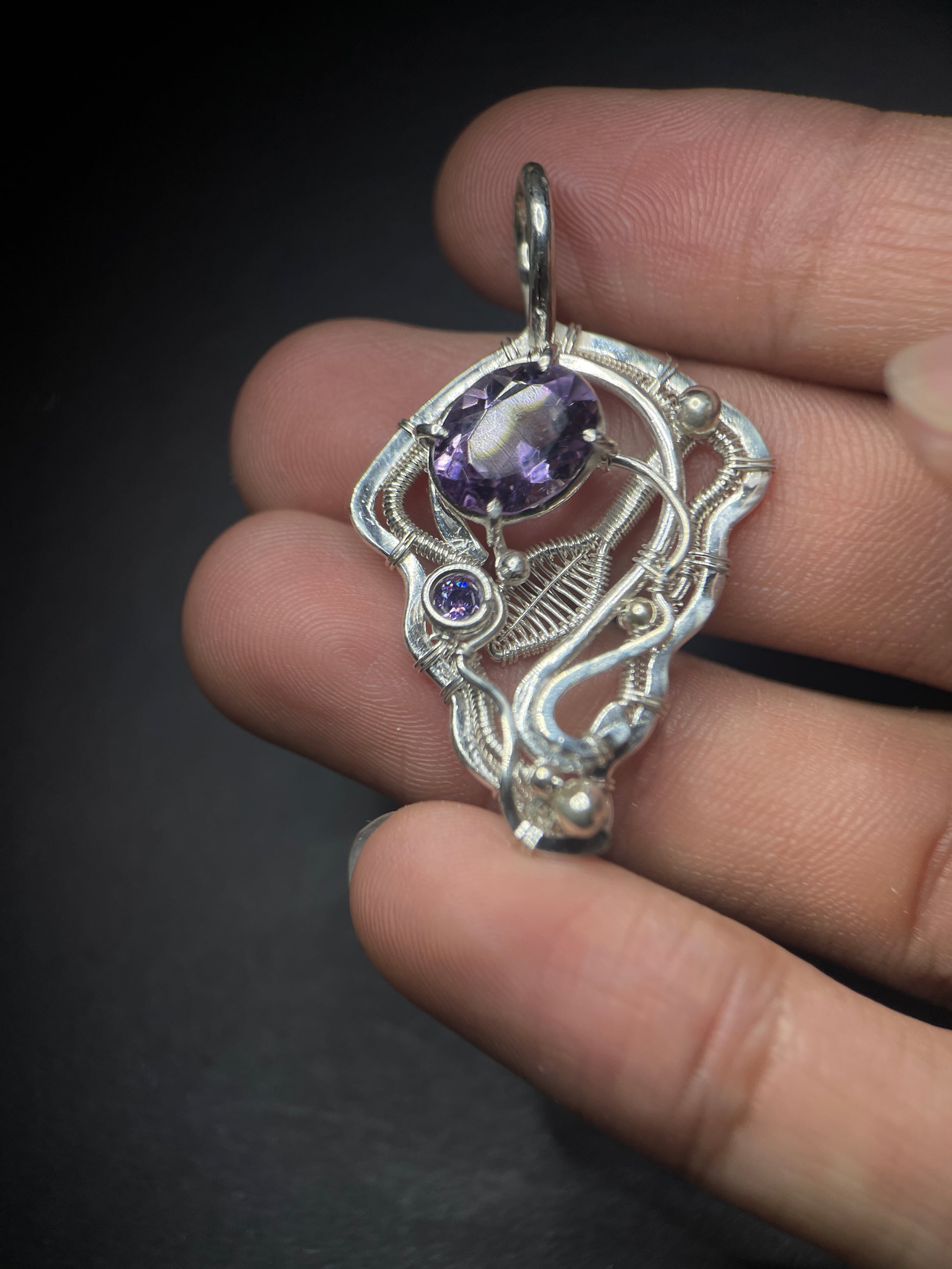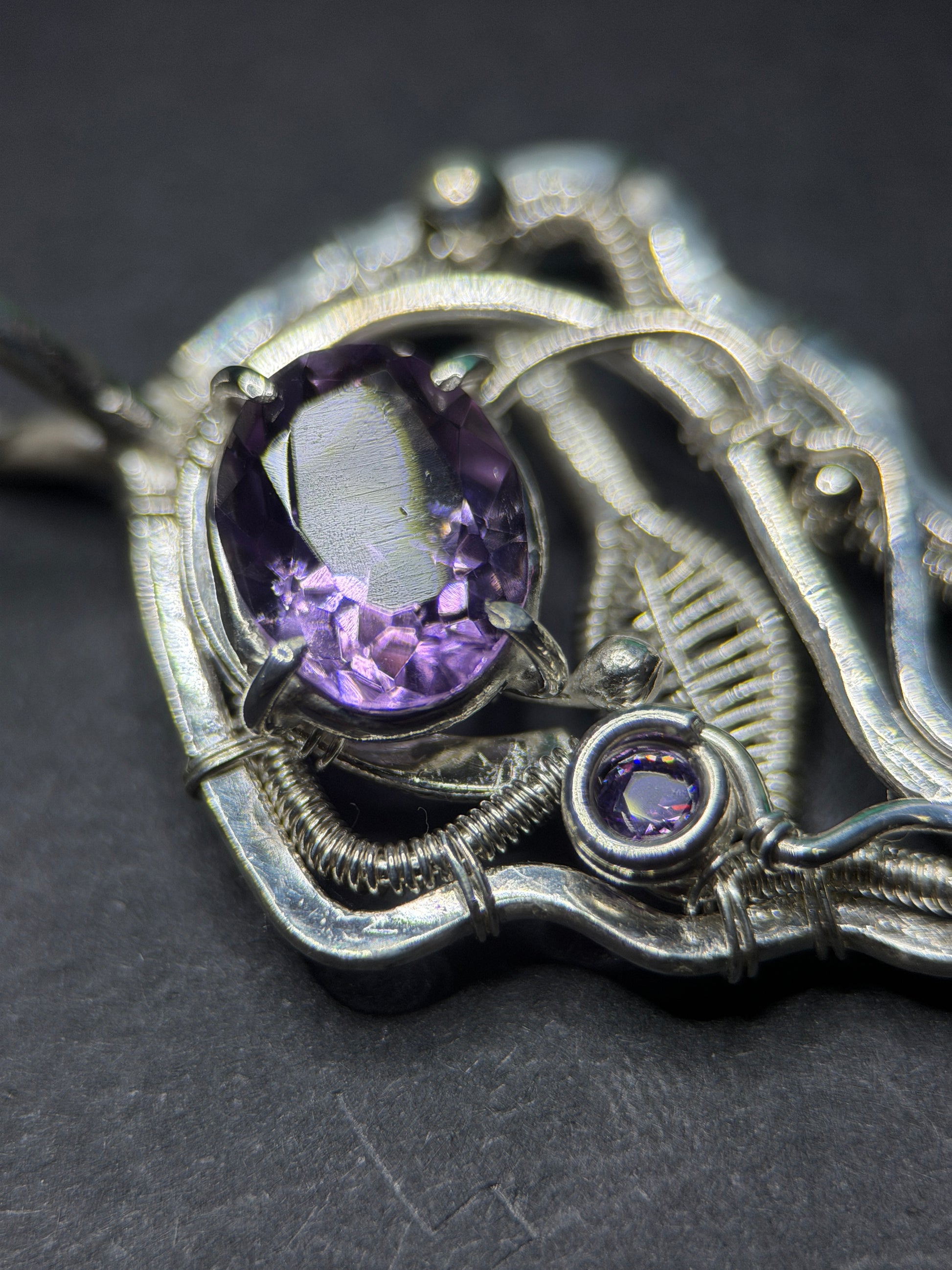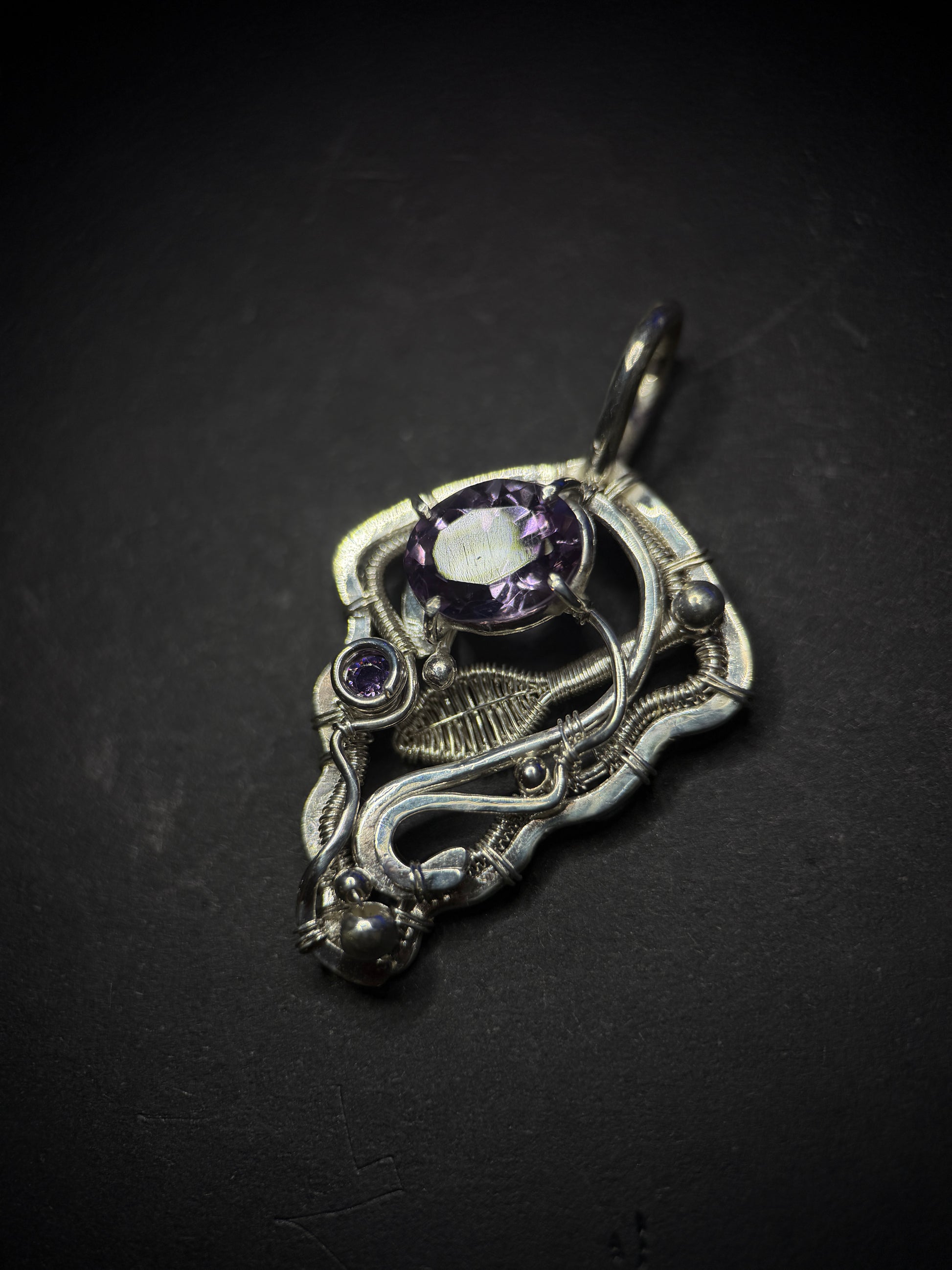 š Midnight Leaf ā Handmade Silver Wire Wrap Pendant with Amethyst