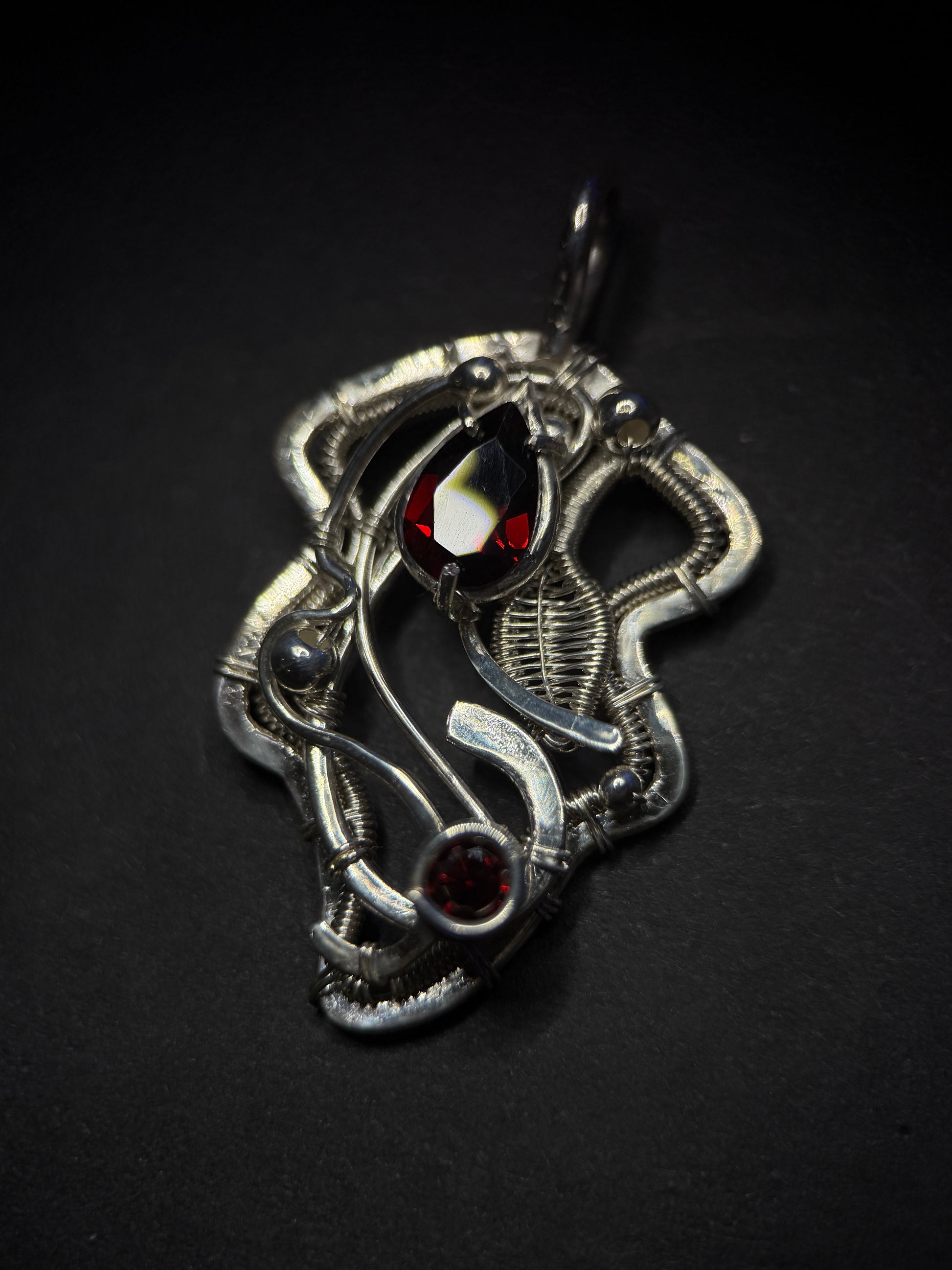 š Crimson Fall ā Handmade Silver Wire Wrap Leaf Pendant with Garnet