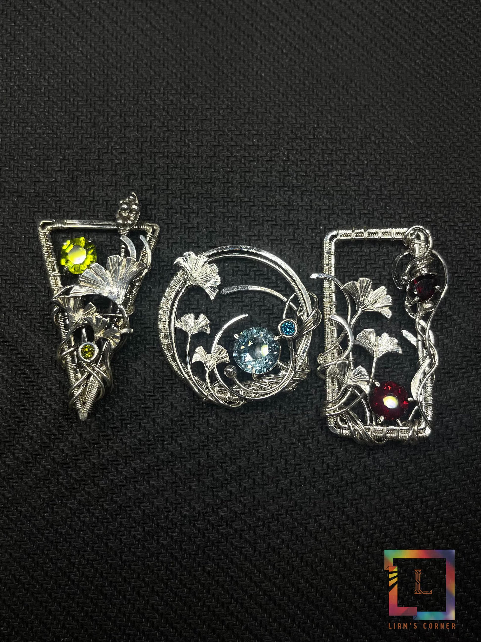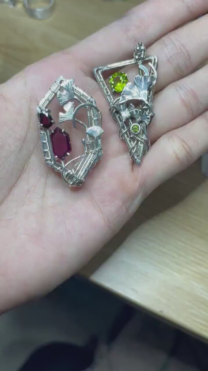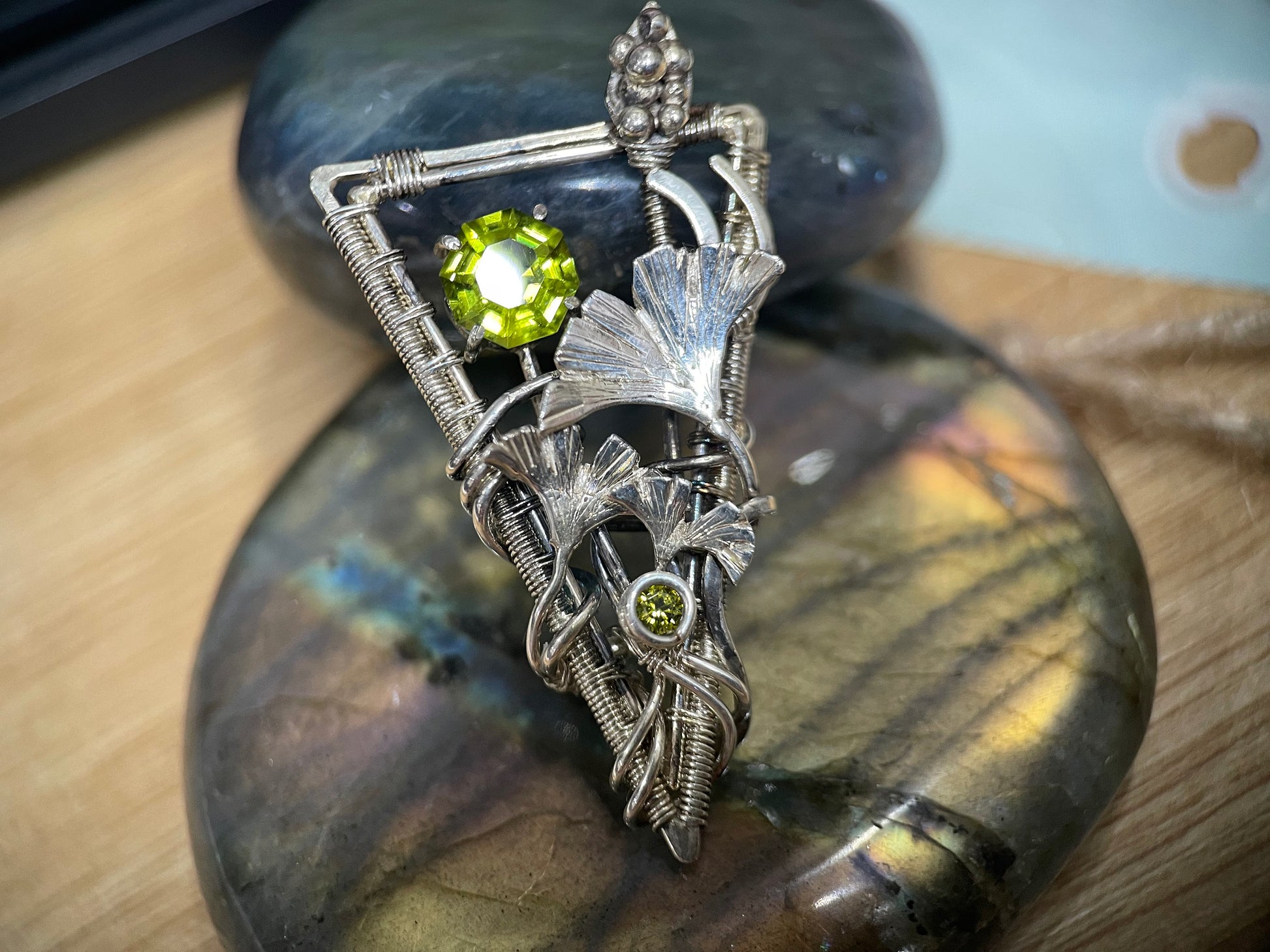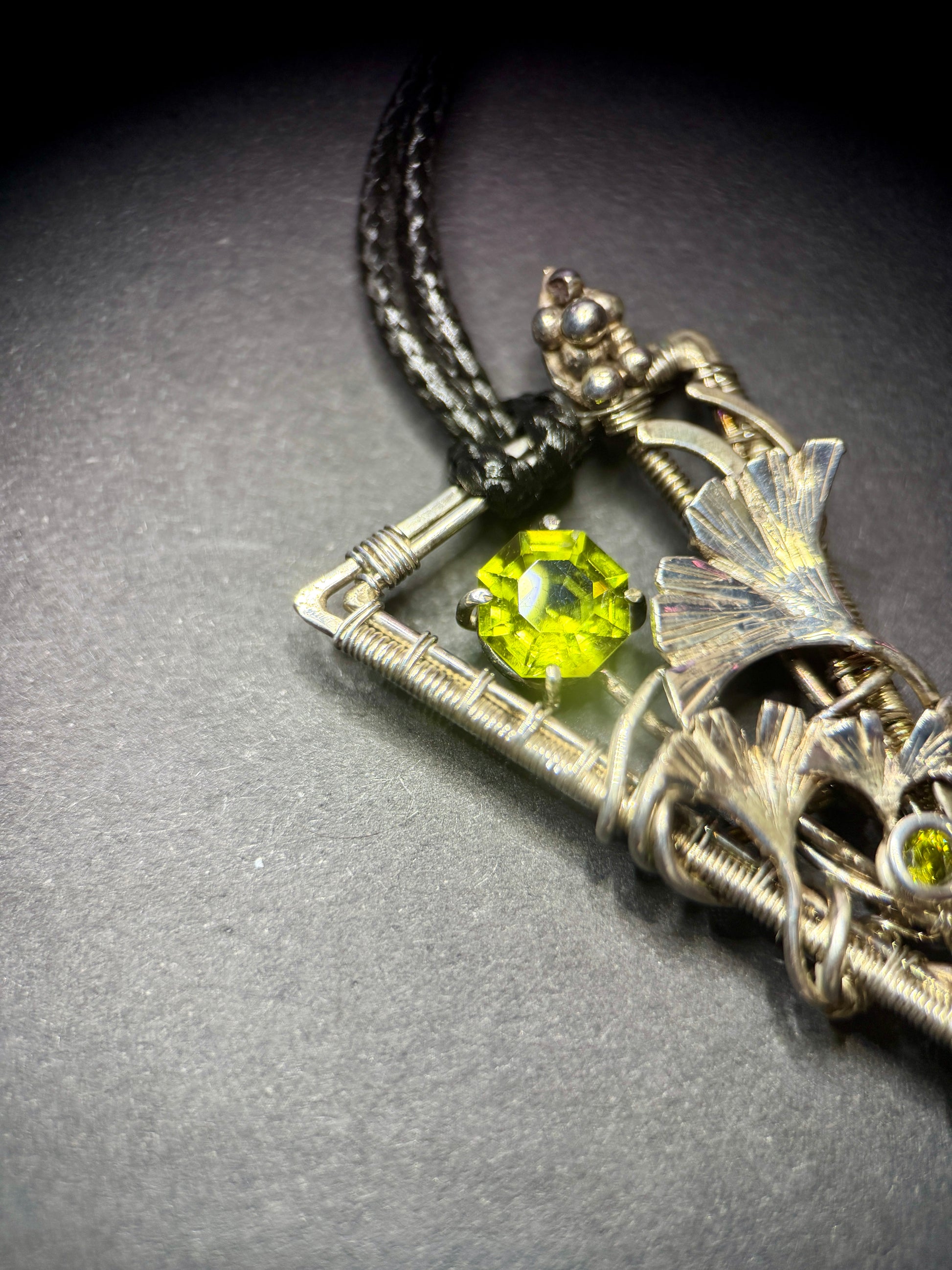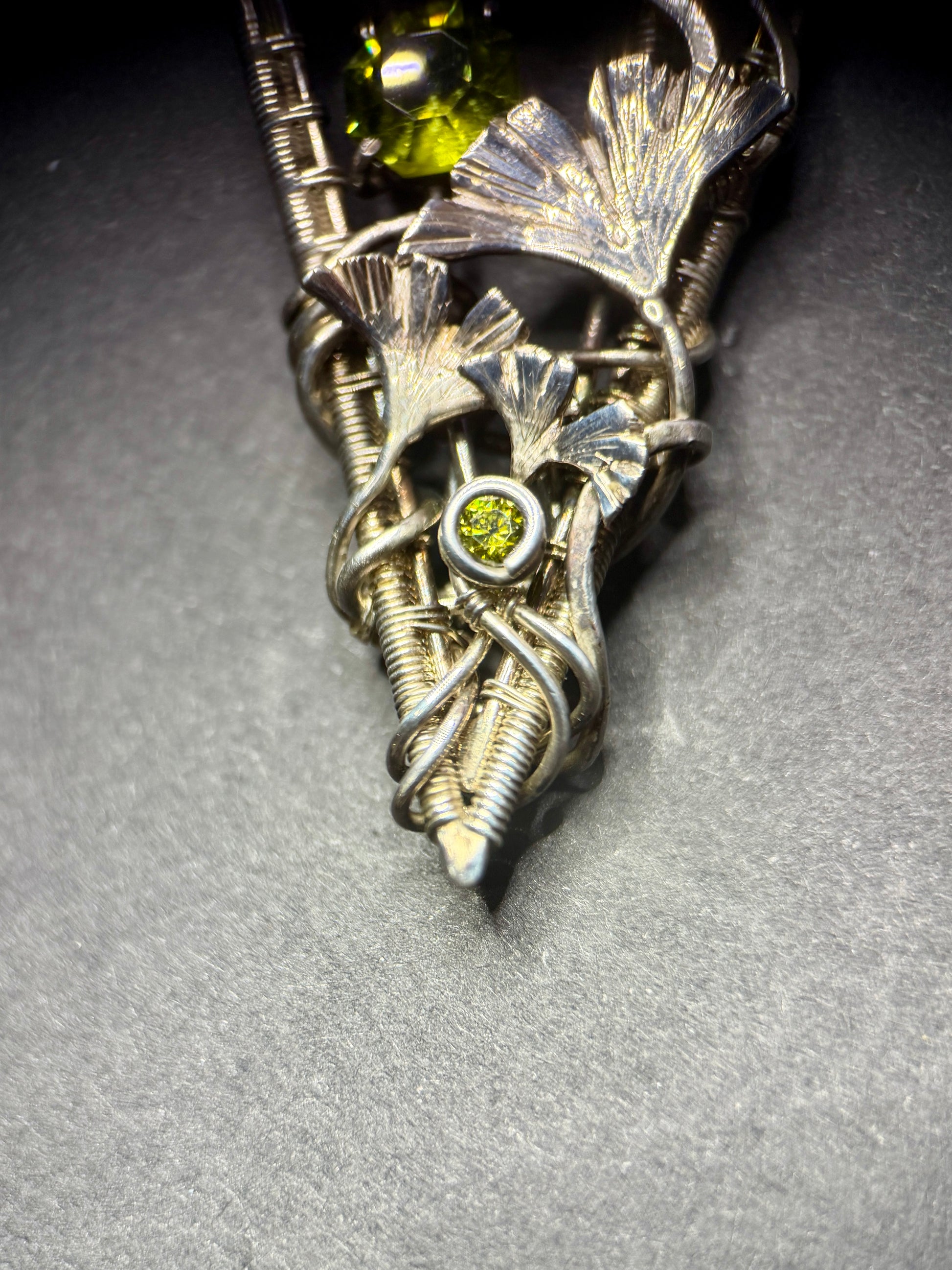 š Sterling Silver Ginkgo Leaf Pendant ā Wire Wrap with Peridot & CZ